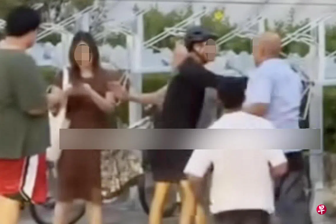 期间阿叔的情绪越加激动,几度推搡欲冲上前动手,但皆被身前两名男子制止,随后又一位男公众也加入劝阻阿叔。