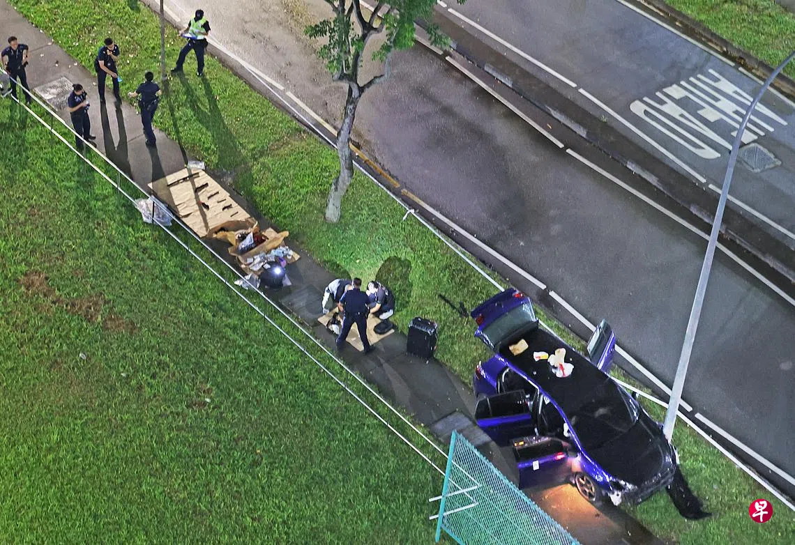据观察,地上有不少车碎片,车头的车牌也脱落在地。记者也在附近组屋楼下看到一名女子正在被警方问话,相信她就是女乘客,过后被警方带离现场。