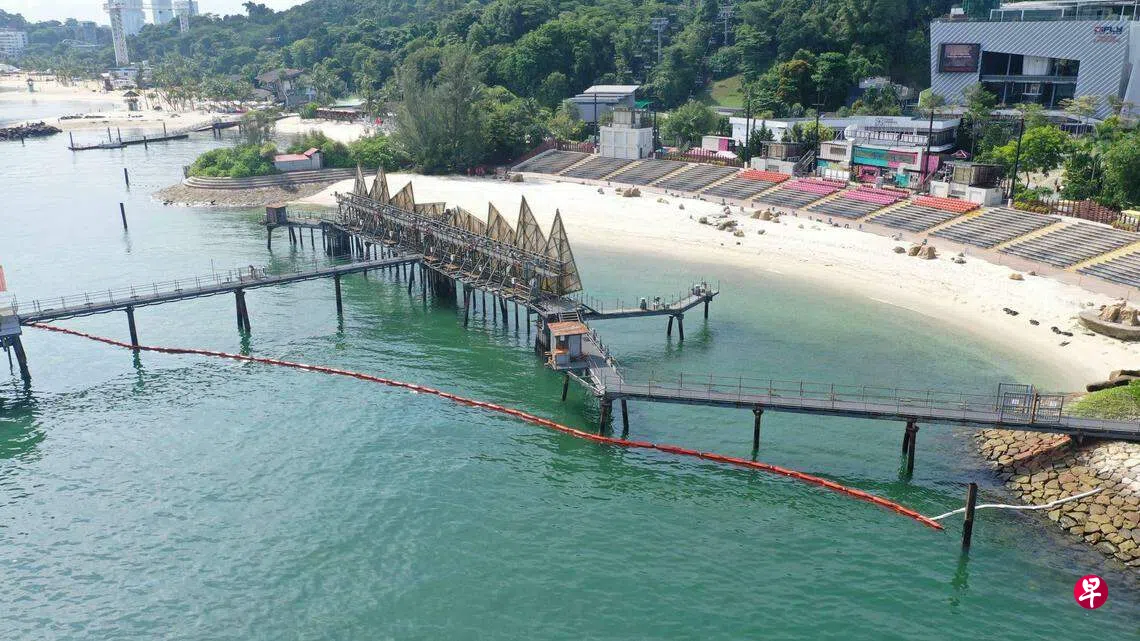 圣淘沙的三个海滩大致上已经干净,圣淘沙发展局星期五(21日)开始清理岩石外滩和防波堤上的油污。