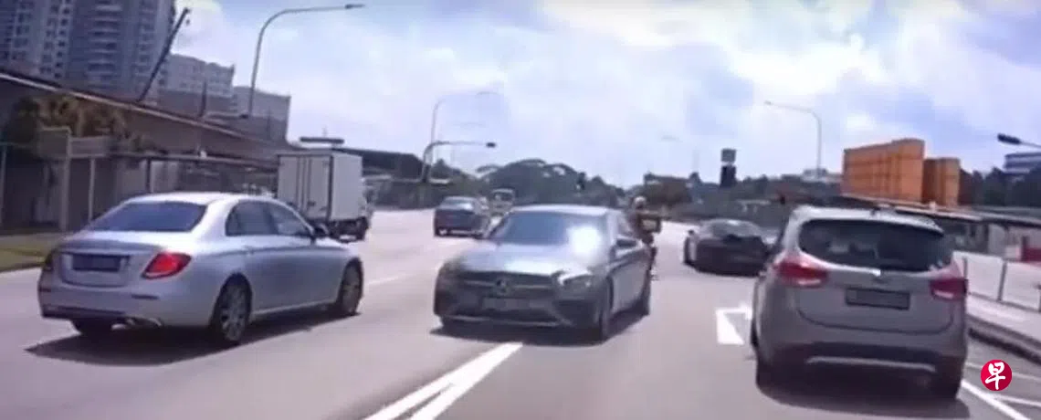 根据脸书群组SGRoadVigilante星期一上载的视频,一辆电单车的行车记录仪拍下了马赛地逆向行驶的画面。