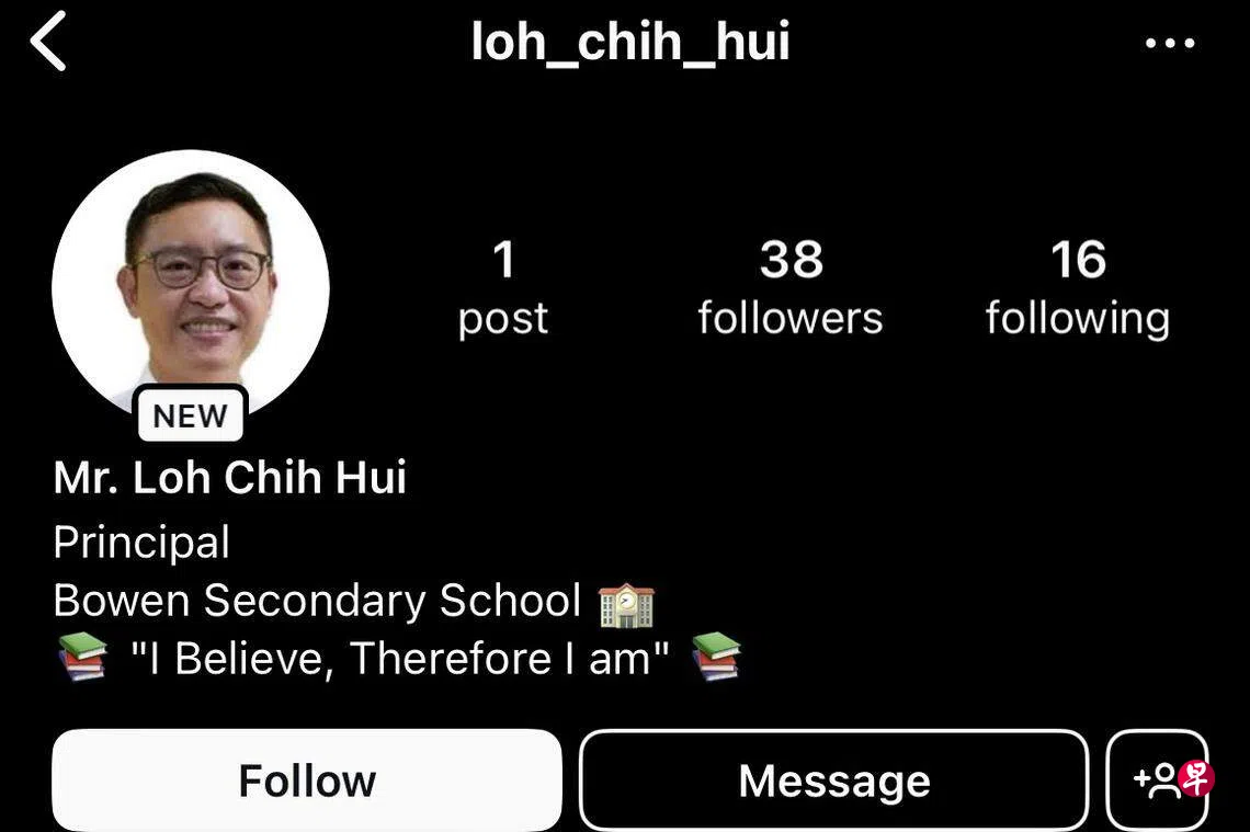假冒博文中学校长罗钜晖的账号创建于6月,用户名仿造校长本名“loh_chih_hui”,也从学校官方账号截取校长照片,并以校长身份发文,鼓励学生在6月假期结束之际专心学习。