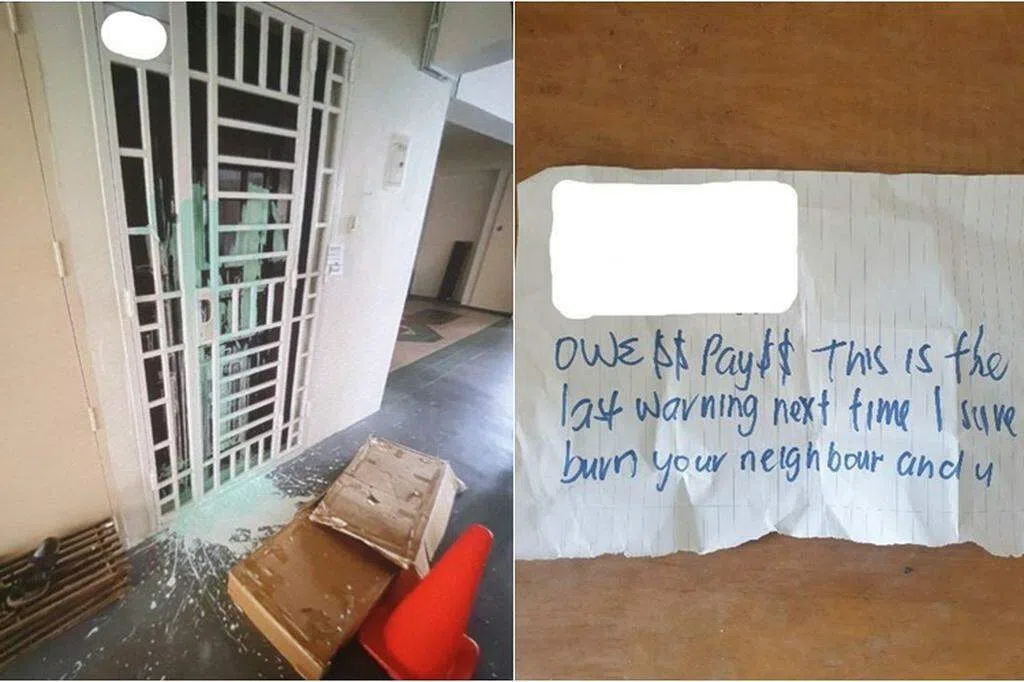 新加坡警察部队星期四(6月27日)发文告说,警方于星期三(26日)晚上8时25分接获报案,指勿洛南路的一个住宅单位发生大耳窿骚扰案,有人在单位外的阶梯留下讨债字条。