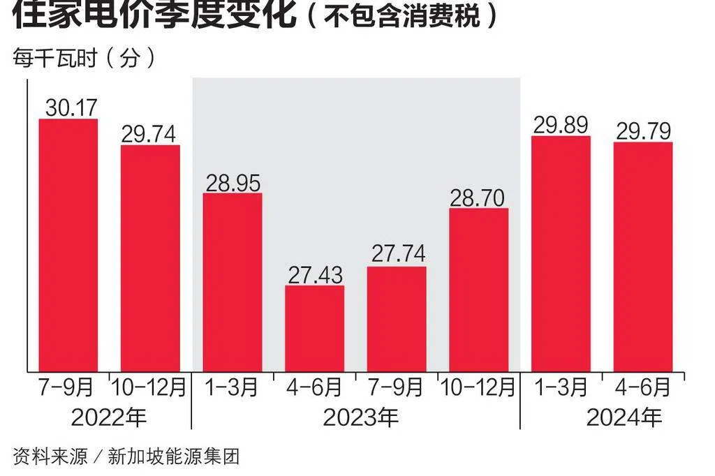 新加坡能源集团星期五(6月28日)公布最新电价,不包含消费税,7月1日至9月30日第三季的住家电价,每千瓦时上调0.09分,从目前的29.79分增至29.88分。