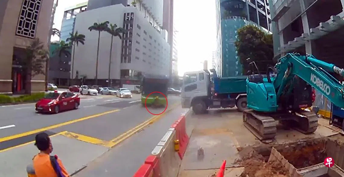 一名工人走出马路放置路障时,却遭到一辆右转的巴士撞上,卷入车底后遭巴士的前后轮两次碾过,导致客工大腿骨折,送院治疗。