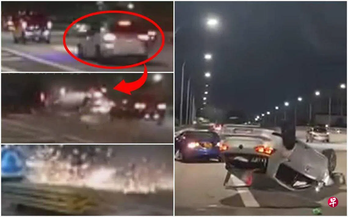 疑酒驾在淡滨尼快速公路上追尾货车,导致现场瞬间火花四溅,追尾的肇事车辆翻覆在路上,三人送院治疗。19岁肇事男驾驶员因酒驾被逮捕。