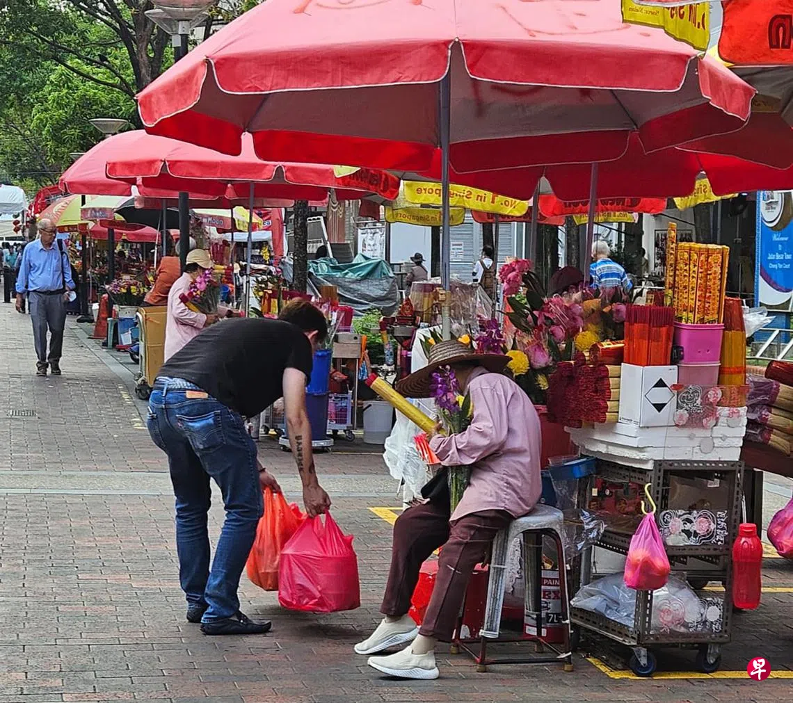 许茗杰说,当时一名看似40来岁的男子正在拎着两大包食物,逐一分发给在观音庙外卖花的大叔大婶。