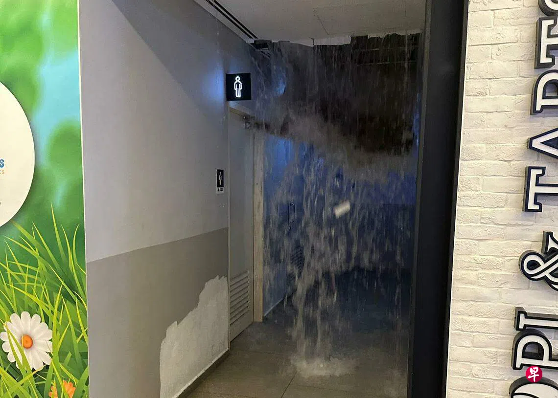 巴耶利峇地铁站旁的新邮政中心,星期六(6月29日)晚发生水管爆裂,有顾客受困厕所遭“瀑布”袭击。梁家欣(35岁,室内设计师)告诉《联合早报》,事发时临近商场关门时间,女儿正在一个人上厕所,岂料厕所突然一片漆黑,天花板也开始漏水。