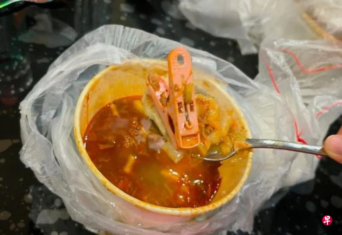 有网民留言推测,或许是摊贩准备食物时不小心把夹子掉入汤里,因为摊位助手一般会使用这类夹子夹在食物包装盒上,通知厨师要准备什么食物。