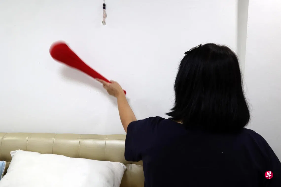 她说,租户曾解释是楼上制造的噪音,但她却发现,每当该租户不在时,家里就变得安静许多。赵女士有时用房内的按摩棒敲回墙壁,希望提醒对方停止。
