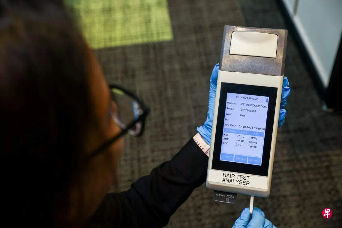 这款即时毛发验毒仪的评估,由内政科技局法证专业研究中心的高级法证科学家颜国展带领。他说,新仪器的检测步骤简易,只需削下嫌犯的一缕头发,将其磨碎成粉末状,放进试剂中等待反应即可。