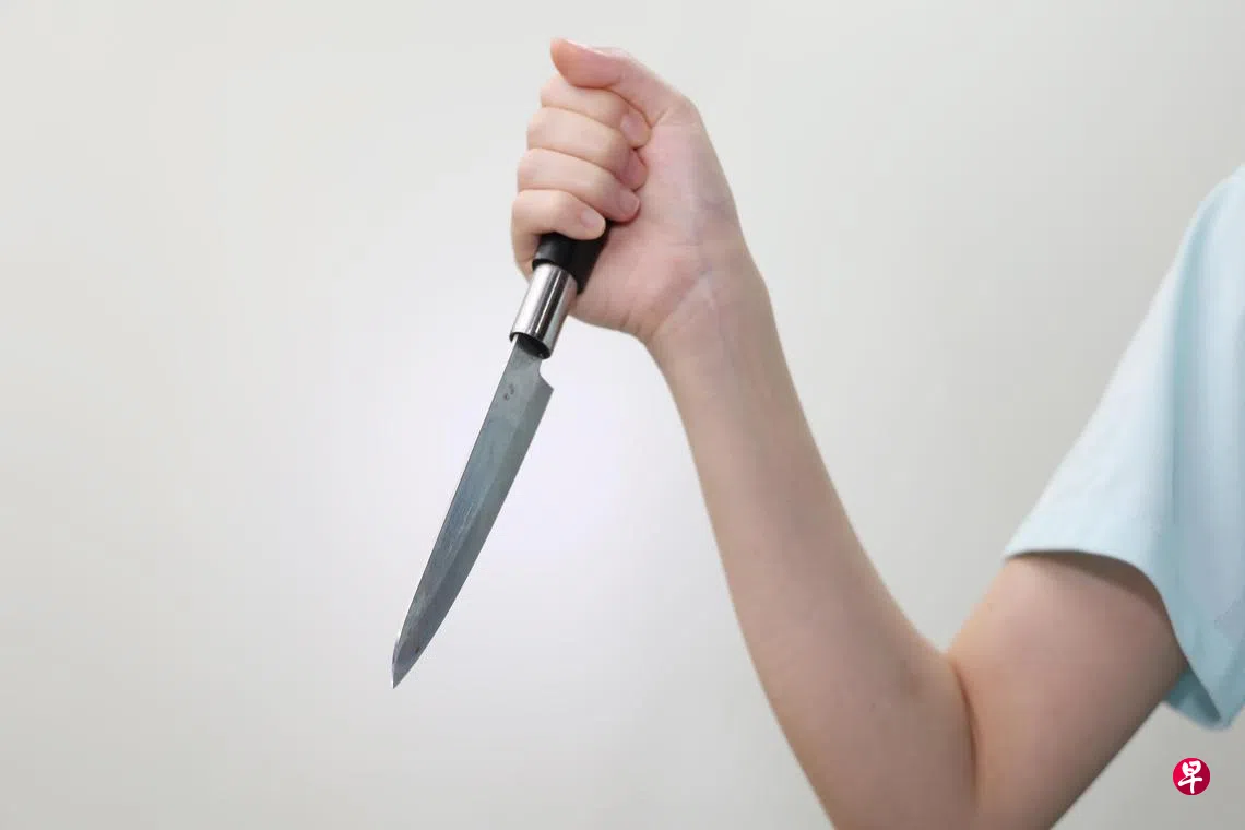 妻子无视被告,抱着儿子进了卧室。被告挂了电话后,从厨房橱柜里掏出一把厨房刀,故意用刀割伤了自己的左手。