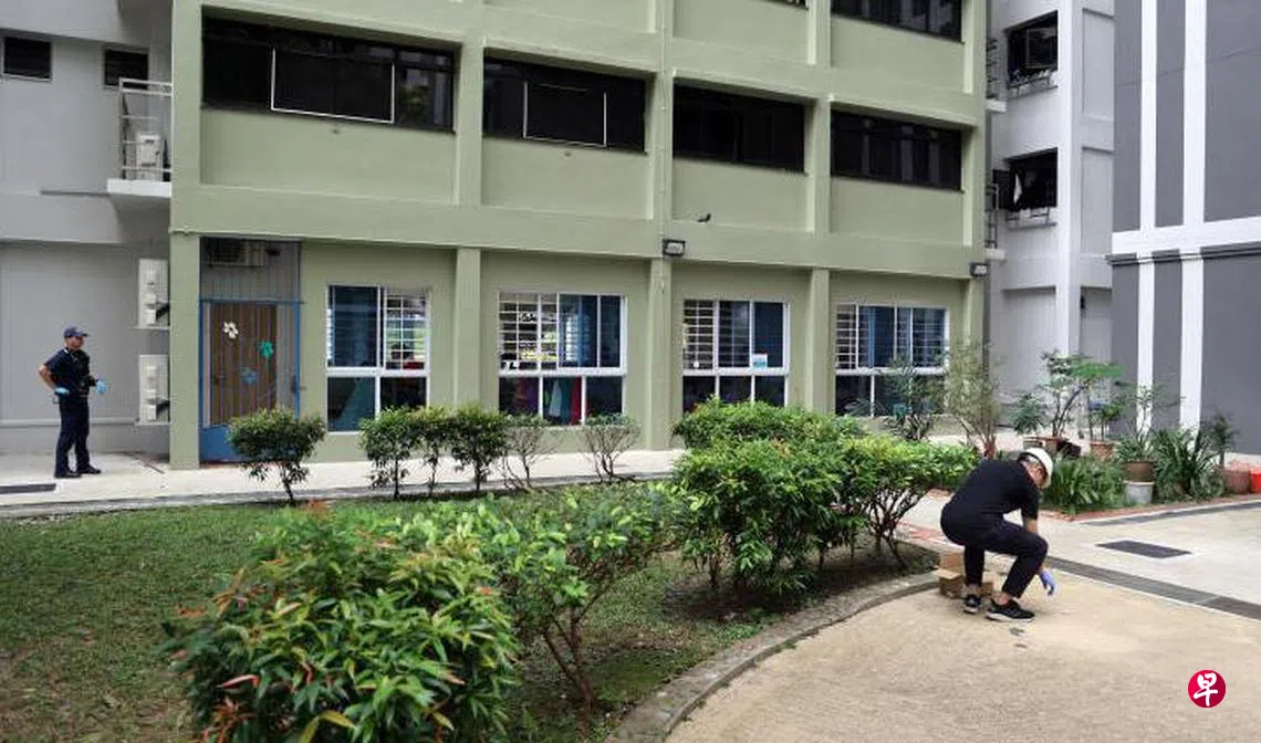 王先生告诉记者,他住在二楼,所以清楚听到东西抛下楼的声音。“东西掉落在组屋前路段和后面的草坪,警察很快到场。”