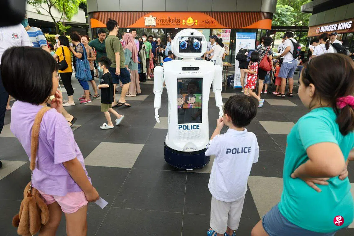 由新加坡警察部队参与研发的AI机器人CODY,星期六(7月13日)首次在义顺的社区活动上“亮相”,吸引了许多公众围观与它互动。