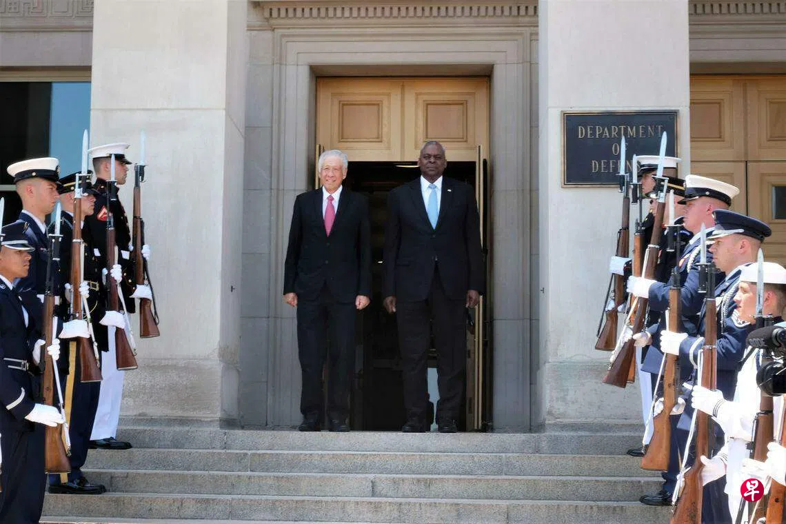 国防部星期二(7月16日)发文告说,黄永宏在新加坡时间星期二前往五角大楼会见美国防长奥斯汀。两人重申了新加坡与美国之间良好的双边防务关系和互惠伙伴关系。