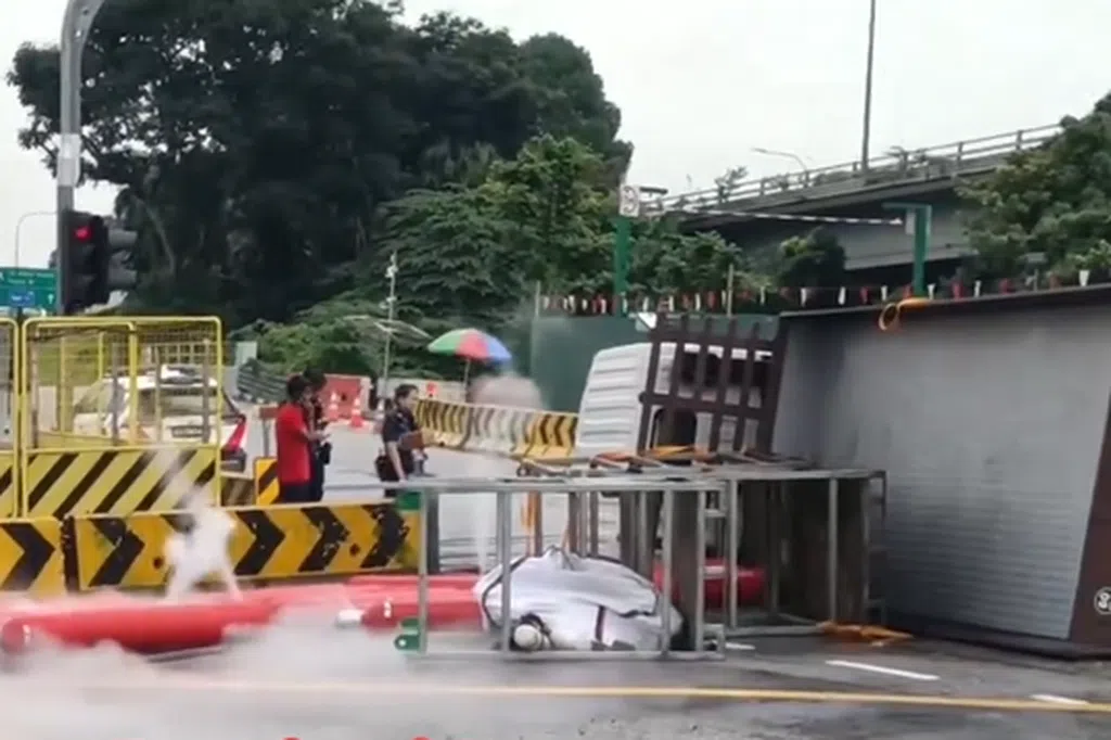 新加坡警察部队答复《联合早报》询问时证实接获相关通报,一辆罗厘疑因打滑而发生交通事故。一名47岁男驾驶和一名49岁男乘客在意识清醒下被送院。