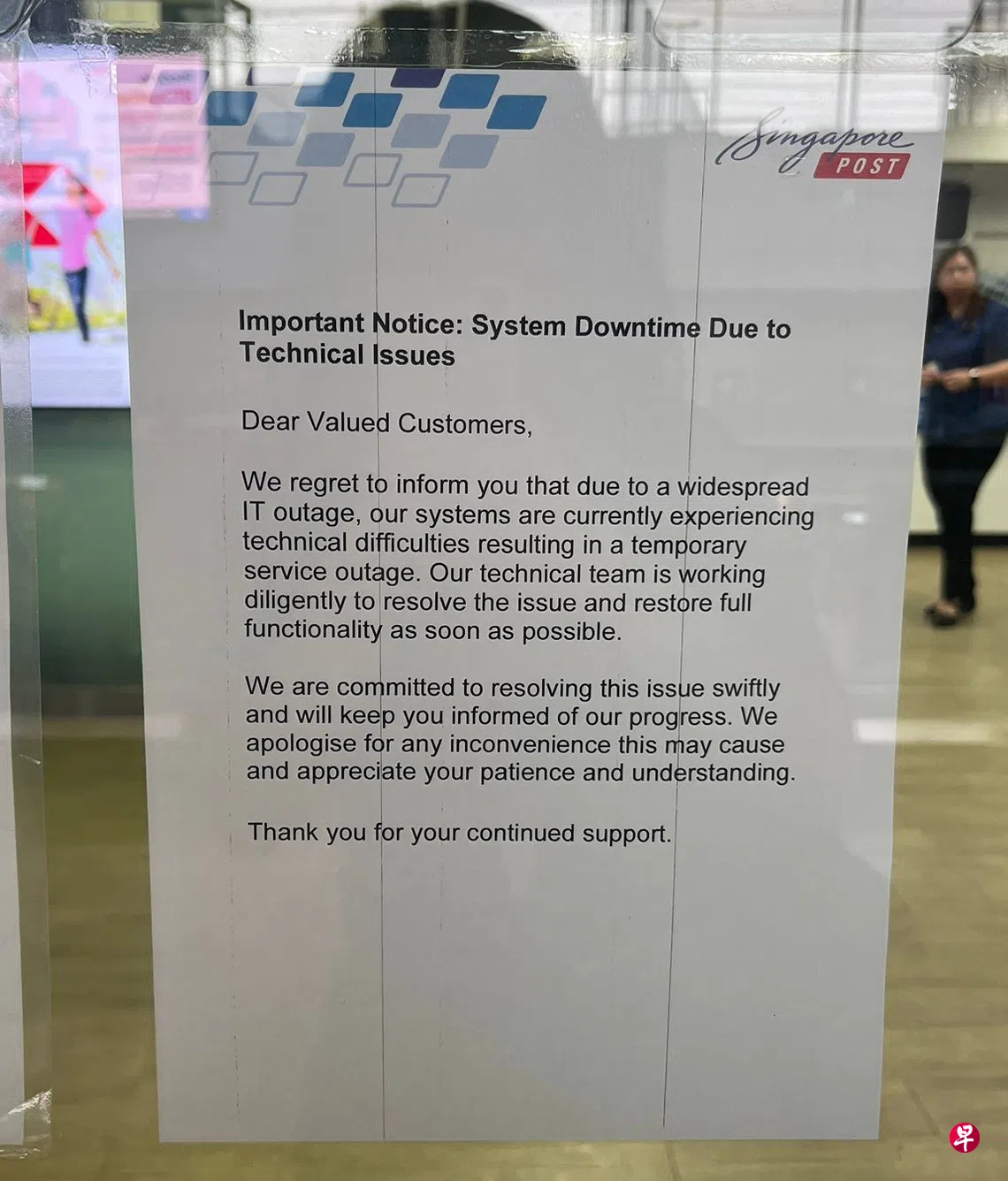 新加坡邮政(SingPost)发言人星期五(7月19日)回复《联合早报》询问时说,由于外部供应商引发的广泛信息技术故障,邮政中心遭遇了系统停机。