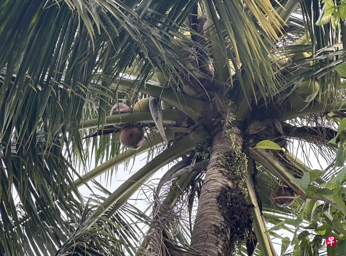 记者日前走访坎贝拉一带时,发现一处兴建中的公寓外,以及路旁种有多株椰子树,其中一棵的椰子果实累累。据观察,有些椰子已经干枯,而由于复叶茂盛,相信椰子就卡在树上。