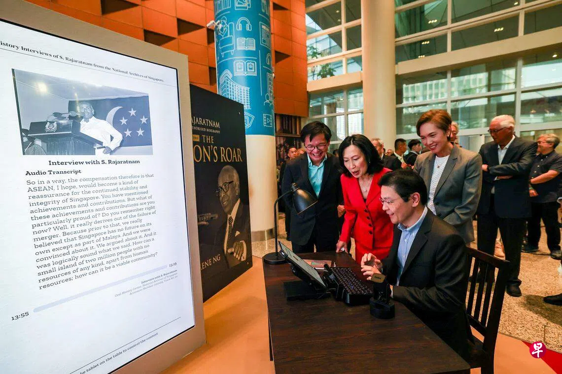 总理兼财政部长黄循财星期一(22日)傍晚,在国家图书馆大楼出席这款聊天书(ChatBook)的启用活动,以及前国会议员伍碧虹新书、拉惹勒南授权专辑下册《狮吼之声》(The Lion’s Roar: The Authorised Biography of S. Rajaratnam, Volume Two)的发布会。