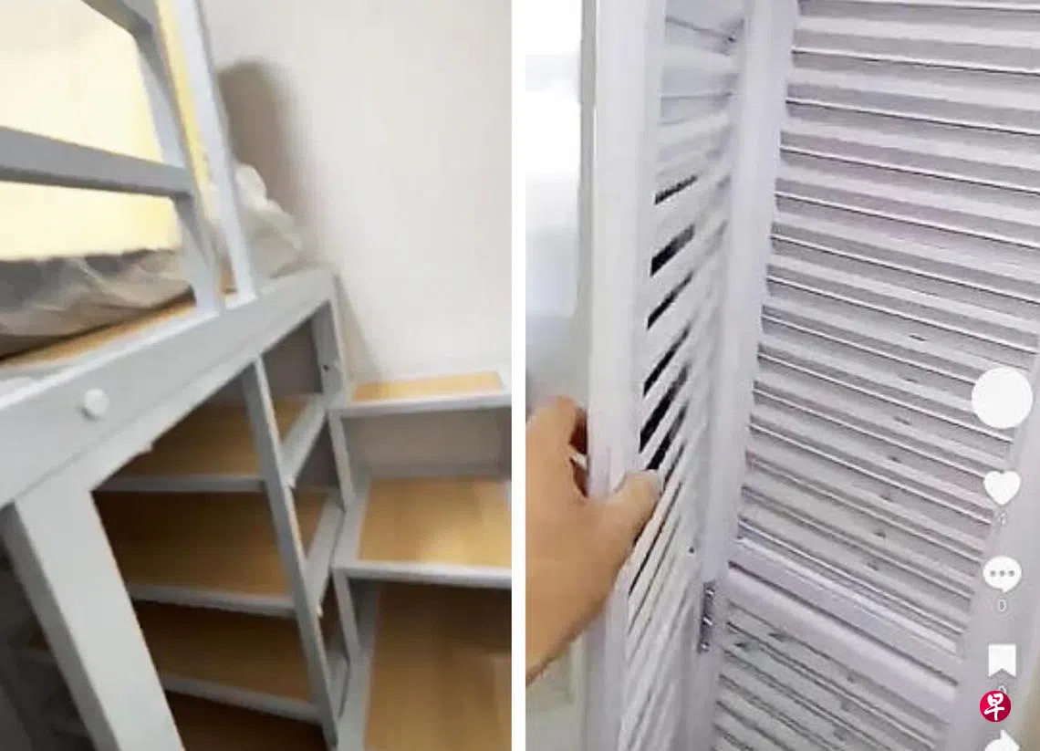 这段由本地一名定制复式床的商家所上载的视频显示,一个防空壕内放置一张复式床,据称佣人单人床在第二层。床边放着架子,防空壕内仍留出部分空间。