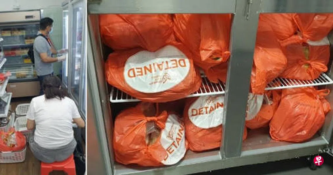 食品局在文告中说,在无照设施中非法储存肉类和海鲜会带来食品安全风险。本地所有肉类和海鲜产品冷藏库都必须获得许可,并且须符合食品局的要求和食品安全标准。在无照设施中非法储存肉类或海鲜产品,将面临最高1万元的罚款,或最长12个月的监禁。