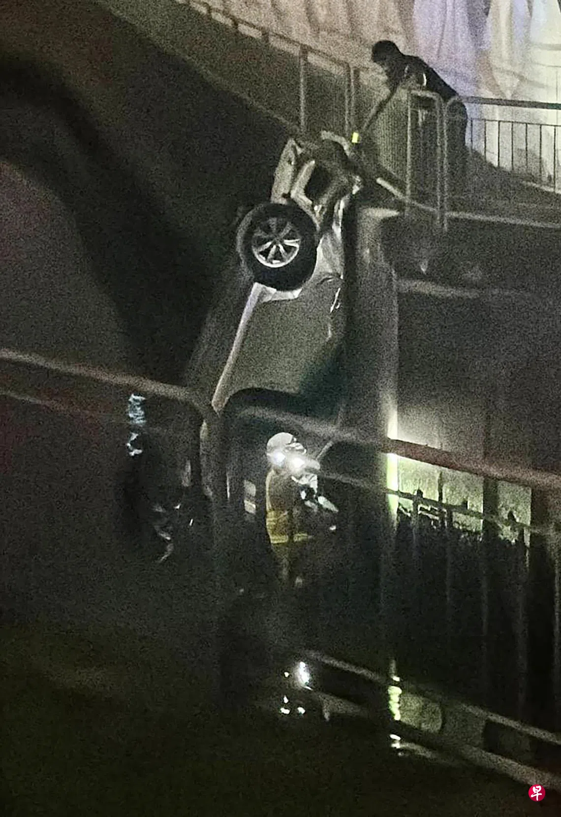 有公众在Telegram群组SGRoad Blocks/Traffic News发照片,称有汽车坠入排水沟。