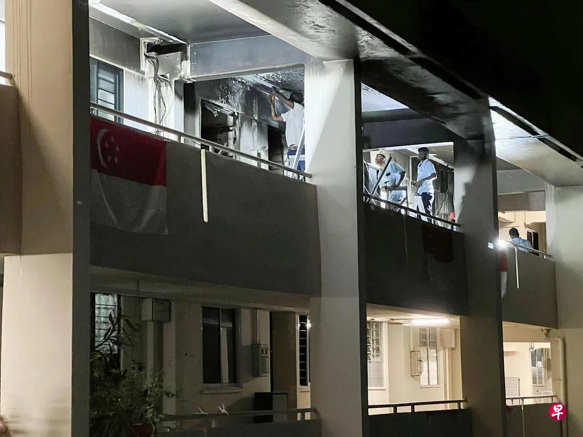 新加坡民防部队在答复《联合早报》询问时说,上述火患源自组屋单位的卧房,消防员到场时使用了一支水枪扑灭火势。