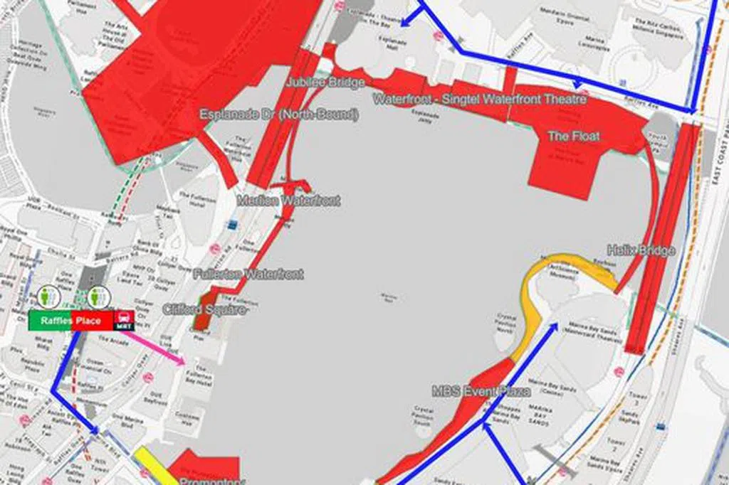 这些区域是:金禧桥(Jubilee Bridge)、鱼尾狮濒水区、富丽顿濒水区红灯码头广场(Clifford Square)、滨海湾艺术中心濒水区、濒水区户外剧院、濒水区老饕湾(Makan Sutra)、螺旋桥(Helix Bridge)和滨海湾金沙活动广场。