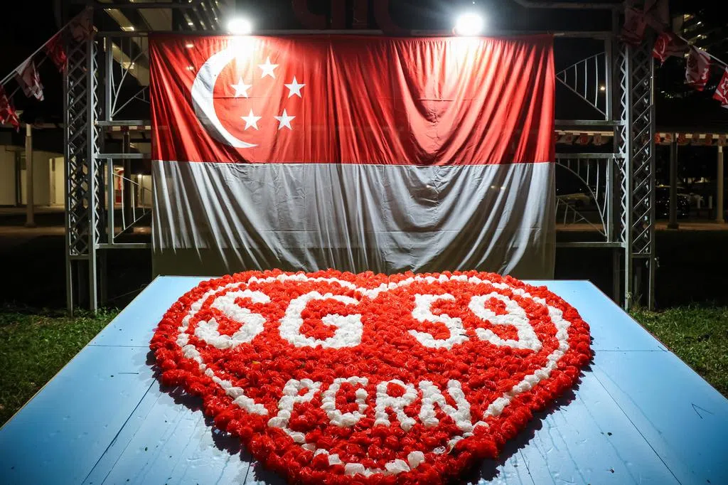 根据早前报道,班丹花园居民联系网为庆祝新加坡59岁生日,在班丹花园第404座组屋设置国庆装饰,将一朵朵红色塑料花朵摆成一个心形,白色塑料花朵拼成“SG 59”,以及班丹花园居民联系网“PGRN”,增添邻里的国庆氛围。