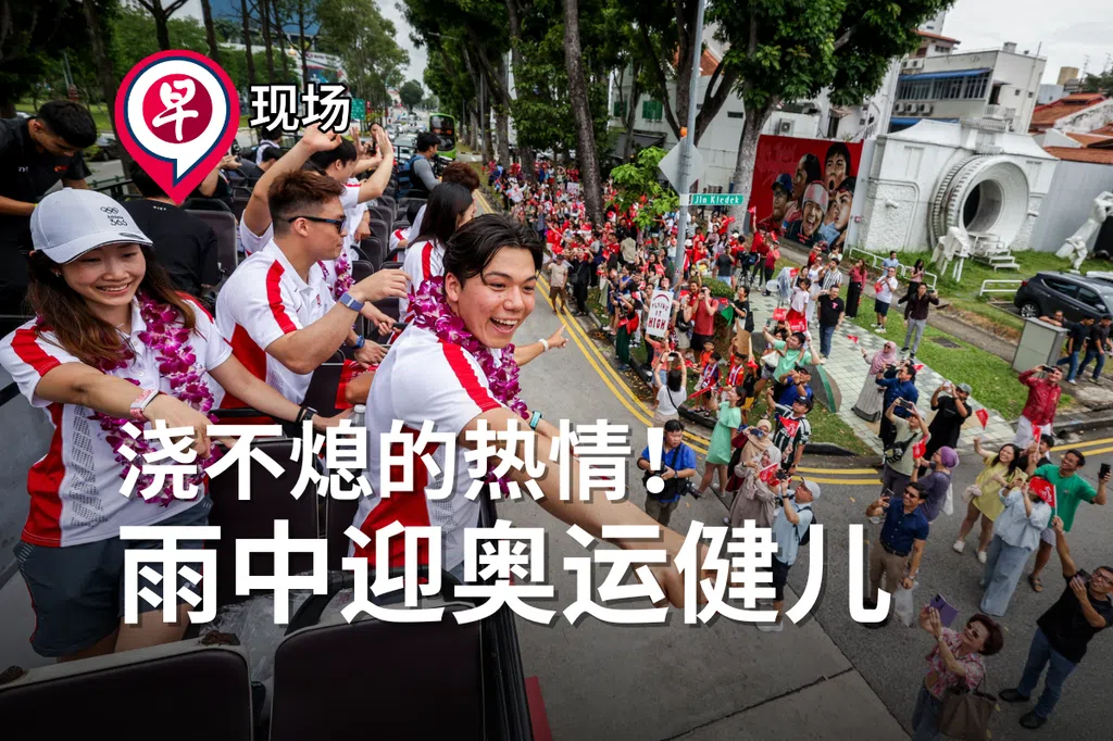 结束巴黎奥运会,新加坡十位运动员星期三(8月14日)乘搭敞篷巴士,进行大约一小时半左右的庆祝游行。团队一共经过五个不同的地方,尽管间中遇到“雨神”,但民众热情不减,为选手们摇旗欢呼。