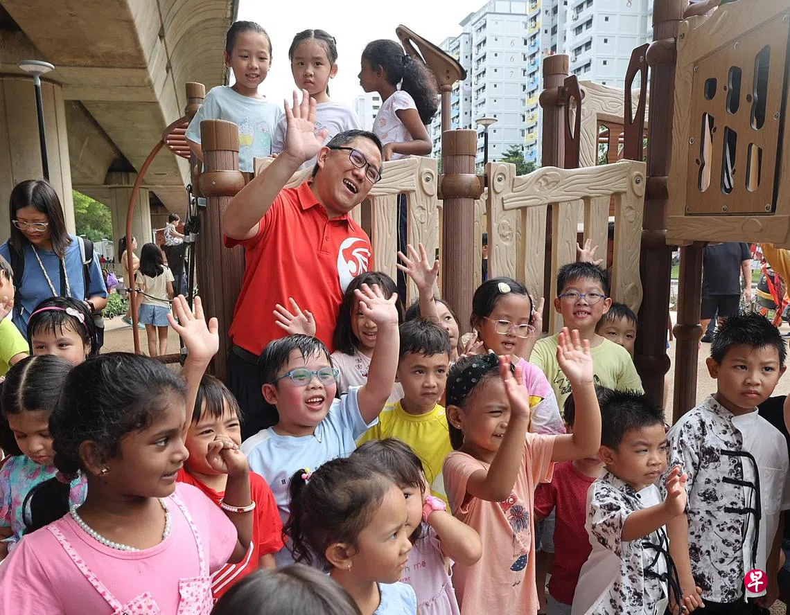 甘榜亭、树屋游乐场、康疗花园……超过500名居民一大清早聚集在油池生活走廊上散步玩乐,享受早晨的悠闲时光,无论老人、家庭还是小孩都玩得不亦乐乎。