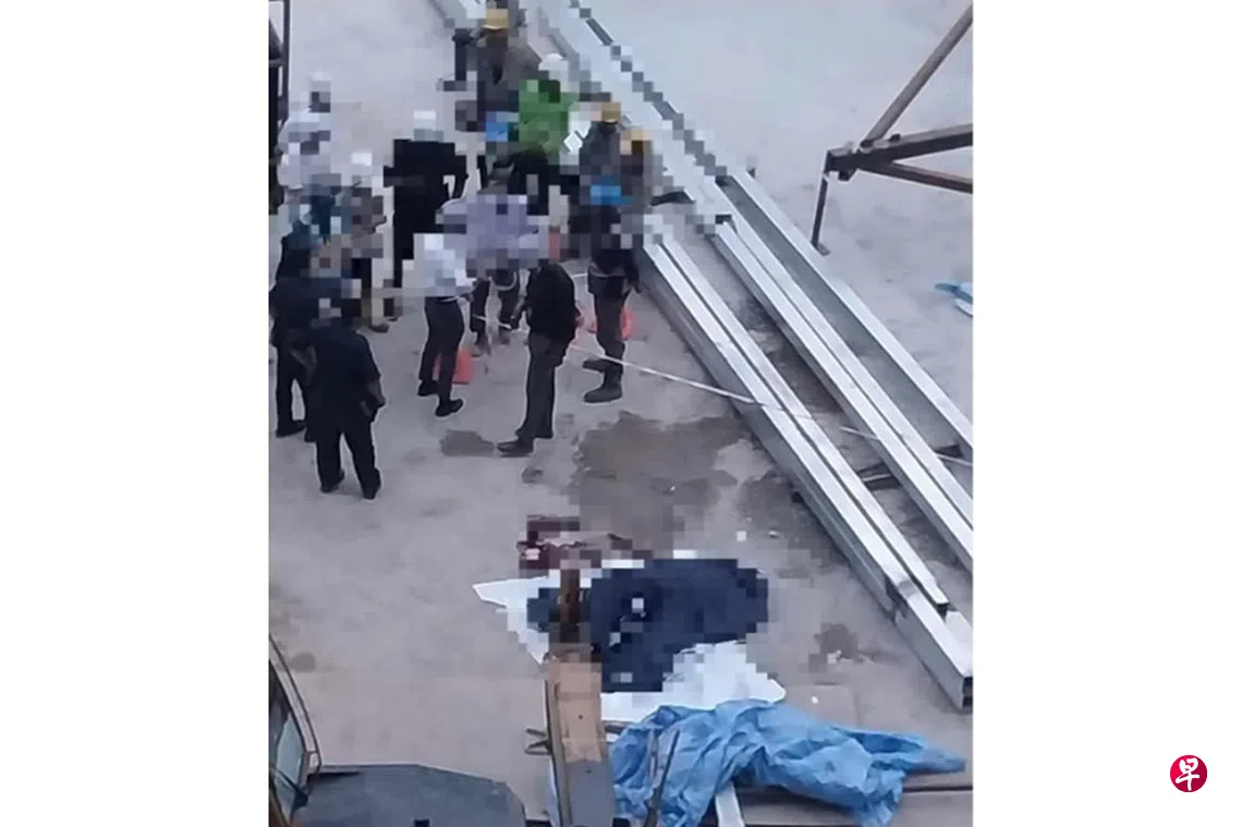 社交媒体流传的消息和照片显示,死者是信号工(signalman)。事发后地面有明显血迹,肇祸的钢架结构散落在旁,不少客工围观。