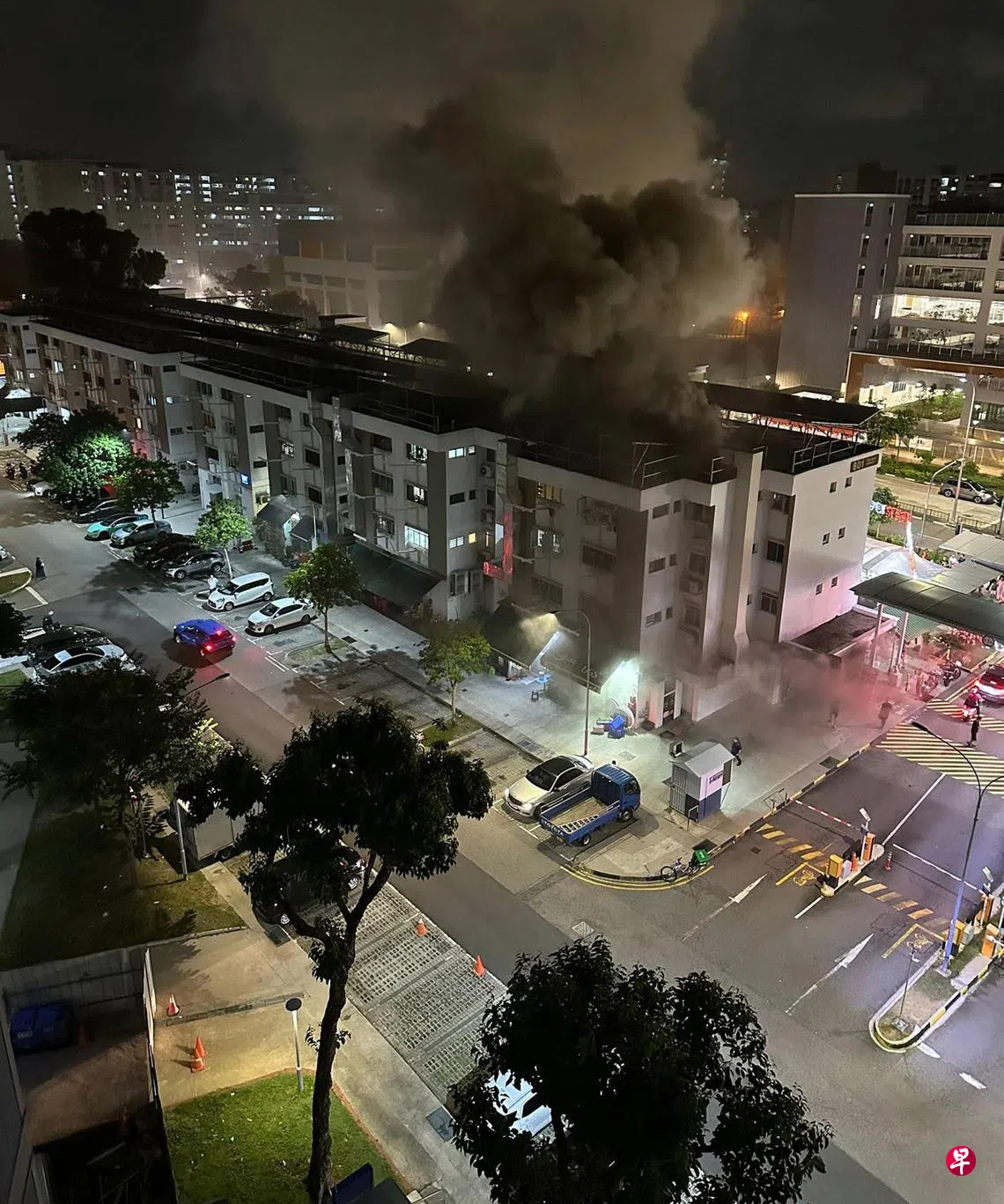 民防部队证实接获通报,火势涉及咖啡店摊位的厨房,民防部队使用一支水枪和消防水管灭火,警方从受影响的单位疏散约40人,无人在事故中受伤。