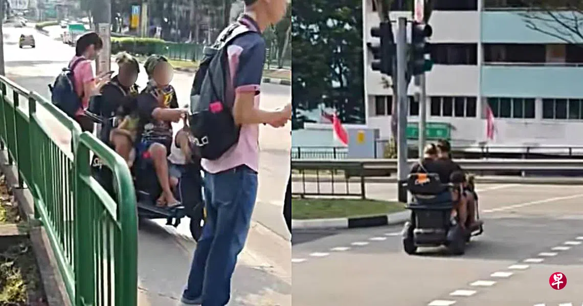 日前一名公众上载视频到本地脸书专页SGRV,指事件发生在星期一(8月26日),地点是红山一带的路口。视频显示一家四口乘坐行动辅助工具(PMA),不顾交通安全乱过马路,画面十分惊险。