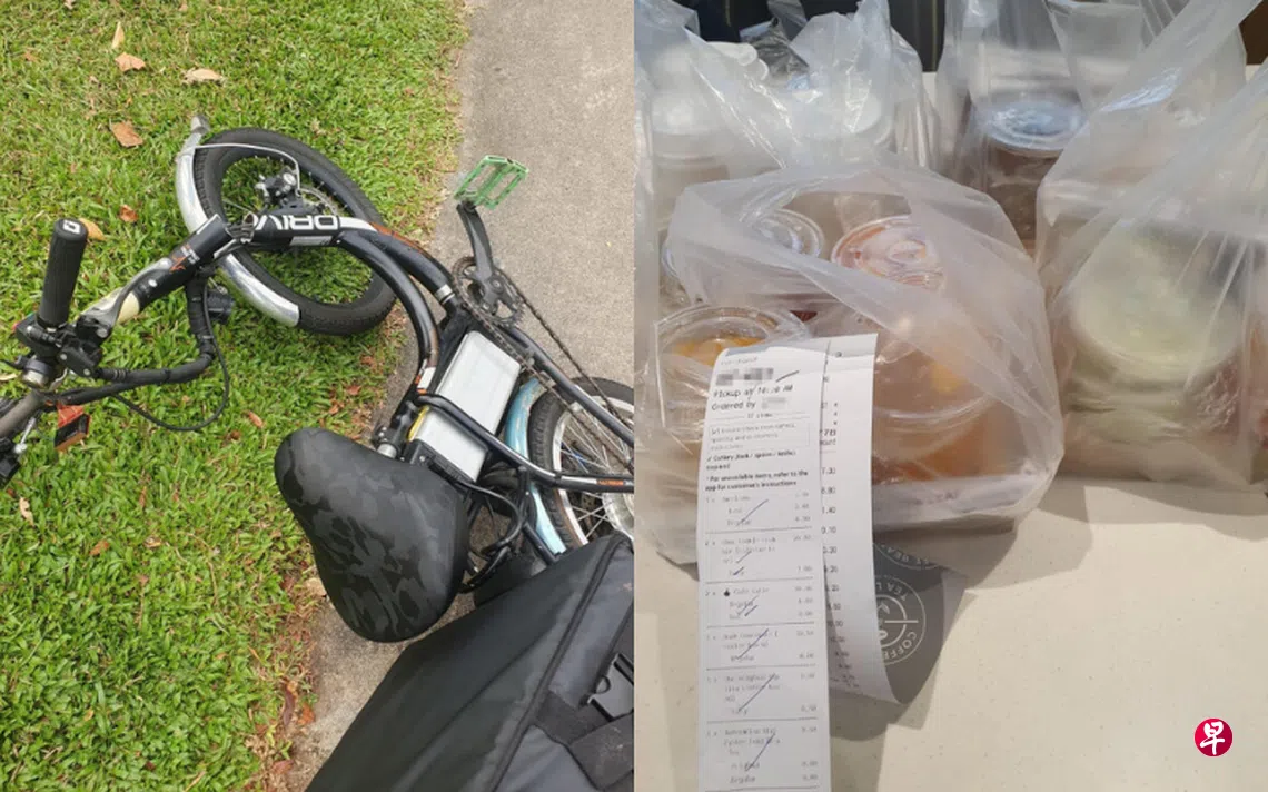 事主陈先生(54岁)告诉记者,他当时到附近组屋送外卖,骑着电动脚踏车过马路时,突然失去平衡,所幸及时用脚撑地,才没有摔倒。“我低下头查看,才发现车身断裂,无法继续骑行。”
