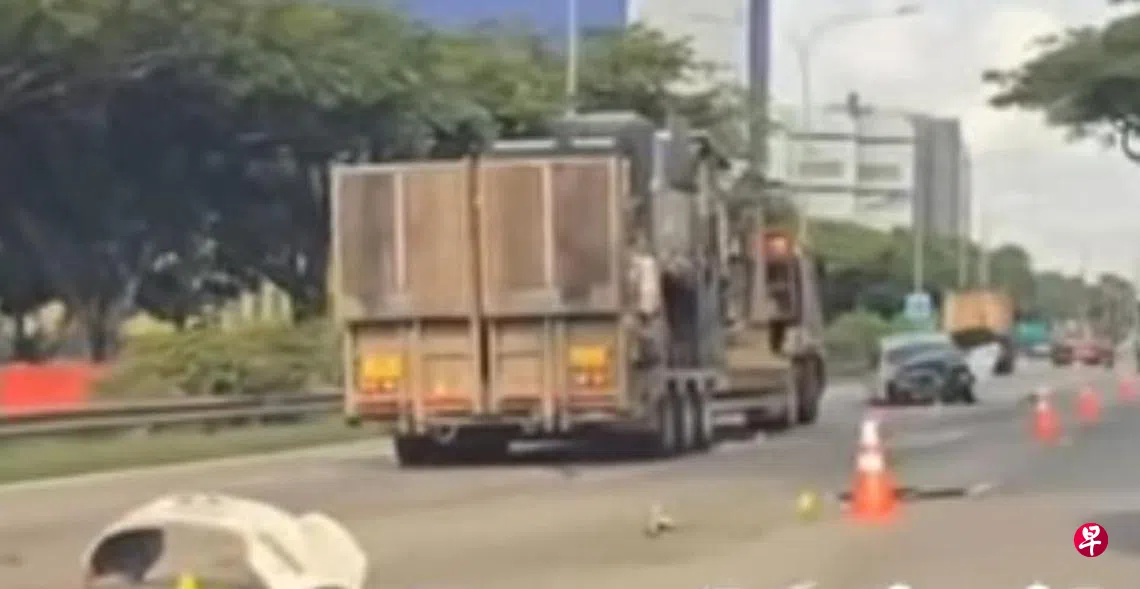 根据脸书专页SG Road Vigilante - SGRV所上载的视频,快速公路上的左边两条车道被封锁,车辆只能行驶在最右侧车道。