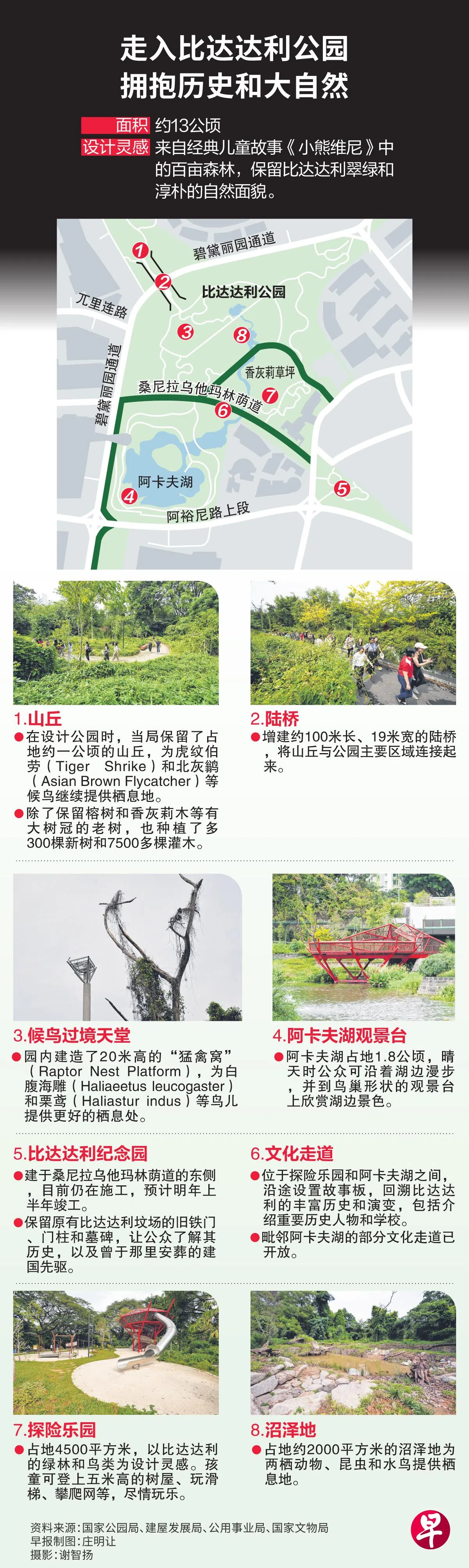 这个新公园位于比达达利新镇中心地带,占比达达利新镇总面积超过10%,由建屋发展局、国家公园局、公用事业局和国家文物局携手设计。