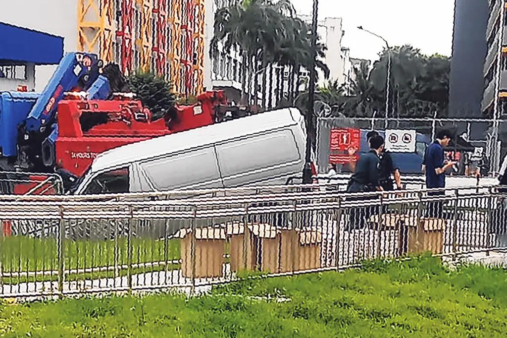 新加坡民防部队受询时证实此事,并指示用液压救援工具(hydraulic rescue equipment)将受困驾驶员解救出来。驾驶员受轻伤但拒绝送院。