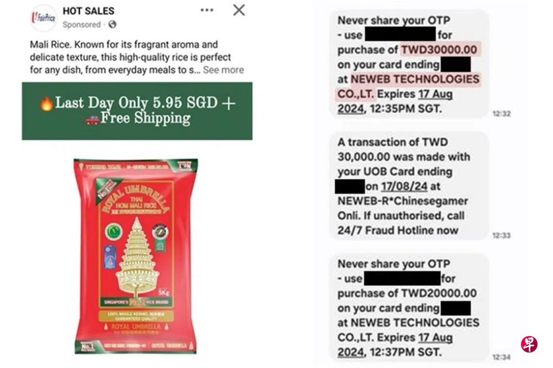 新加坡警察部队星期四(9月5日)发文告提醒公众,在这类新骗局中,受害者往往在社交媒体上如脸书等看到不同广告或贴文,内容为平价超市对包括白米等产品提供巨额优惠。
