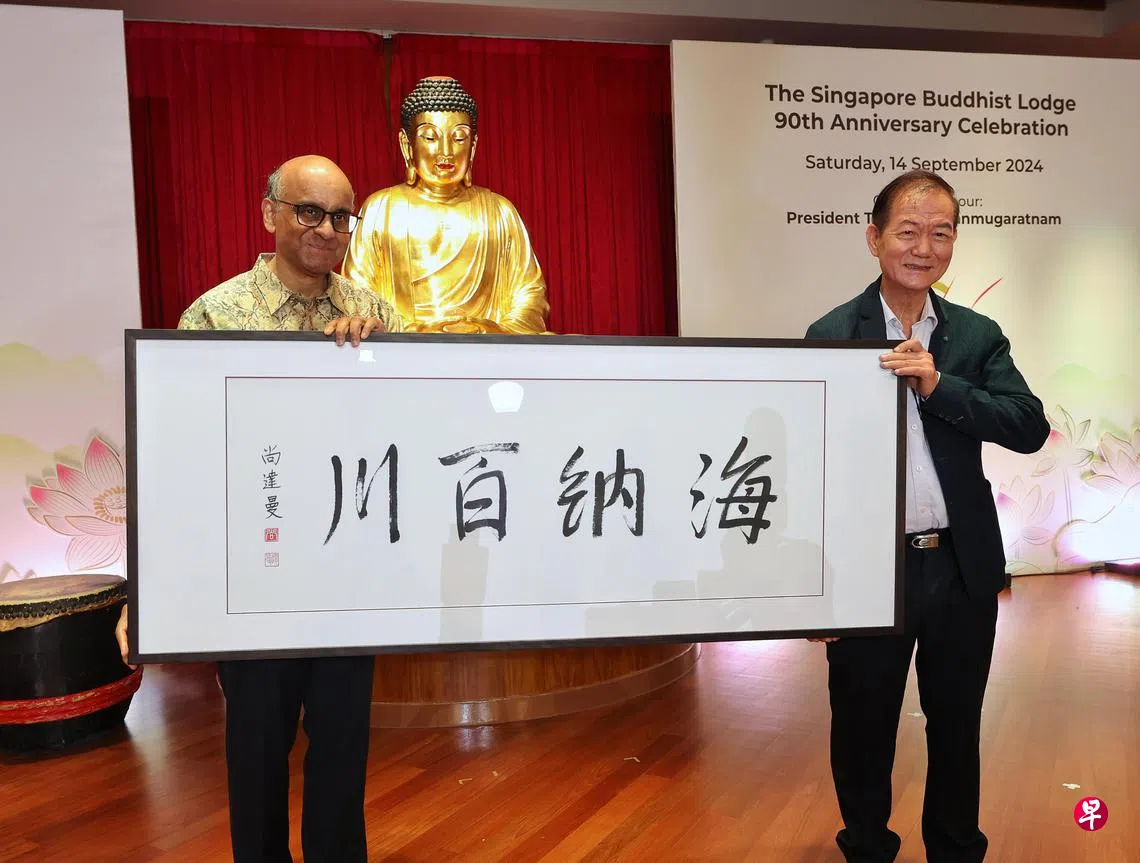 尚达曼总统星期六(9月14日)在新加坡佛教居士林创林90周年庆典上致辞时说:“1934年,当一小群佛教徒创建居士林时,他们的理念很简单,就是要弘扬佛法,传递佛陀的教义、善意和慈悲。”