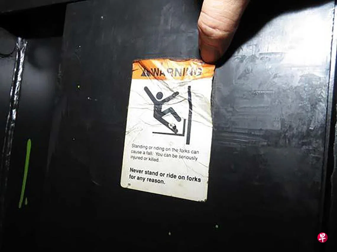岂料,死者上到第六层时,手里握着的铁梁打到第8层的木托架(pallet),结果托架上的轮胎掉落,导致死者从10米高处跌下。