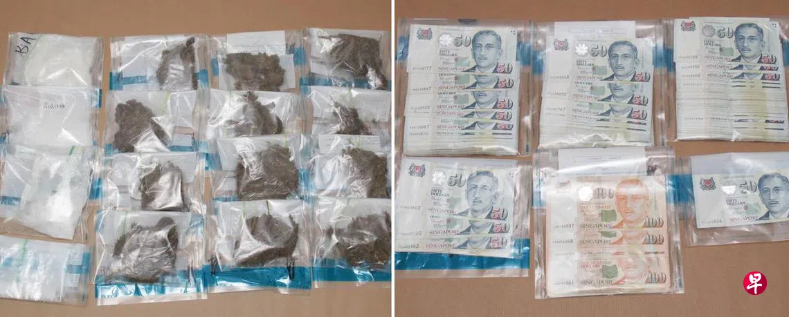 肃毒局经过调查,后续突击了实龙岗北3道一个住宅单位,另一名19岁男子当场被捕。执法人员从他的卧房内,起获了约24克冰毒、多个吸毒用具和1万1400元现金。