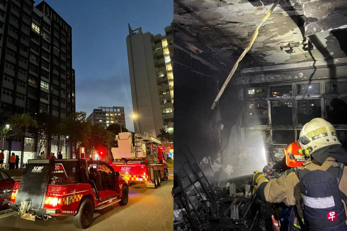 新加坡民防部队在脸书贴文说,火患涉及整个客厅,消防员须破门进入浓烟滚滚的单位,并使用水枪灭火。