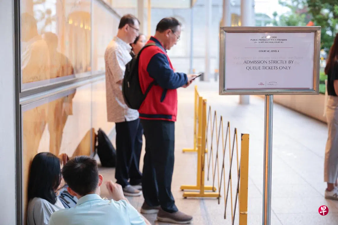 前交通部长易华仁涉贪案星期二(9月24日)开审,不少公众在早上7时抵达高庭排队领取号码牌,以进入庭室旁听。