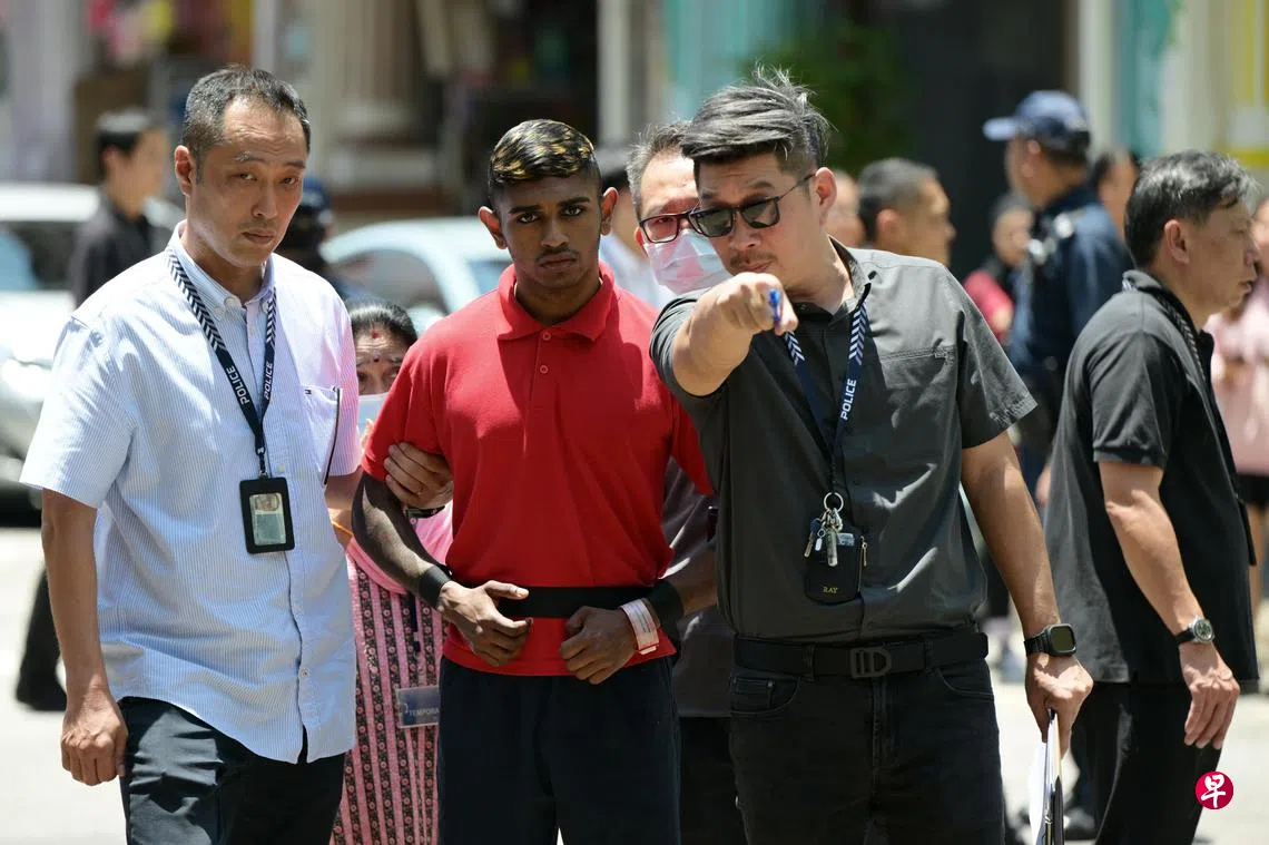 小印度谋杀案被告星期五(9月27日)上午被押回案发现场,协助警方重组案情和厘清案情,整个过程约半小时。