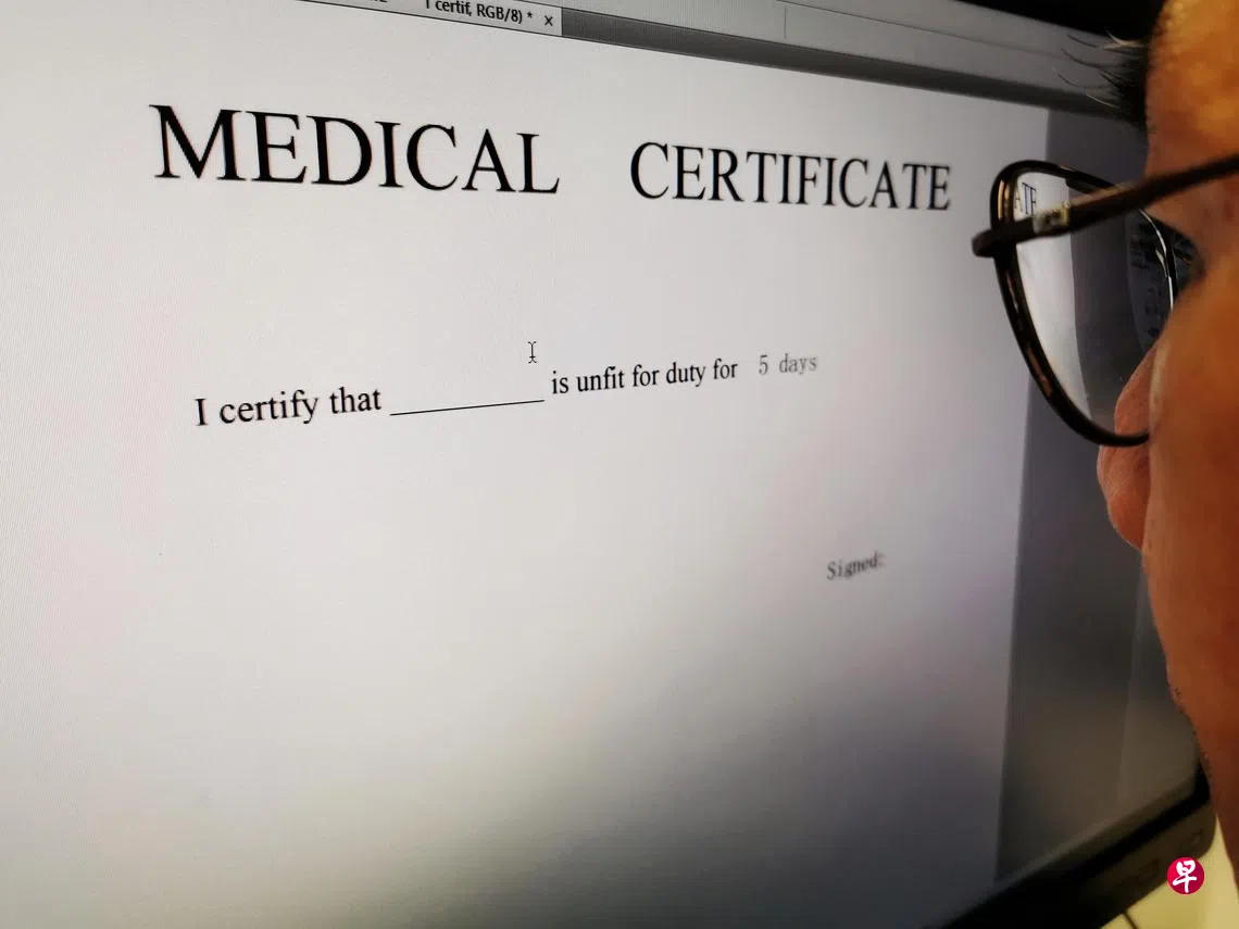 今年4月1日,被告使用Adobe Photoshop修图软件,将之前取得的合法病假单的页头,编辑成位于住家附近圣路加医院(St Luke’s Hospital)的页头。她随后将病假单上的住院日期修改为3月23日至4月3日,并将开单日期改为3月31日。