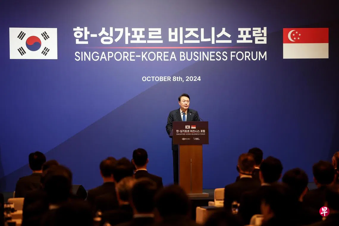 来新进行国事访问的韩国总统尹锡悦,星期二下午在新加坡美年丽思卡尔顿酒店,出席新韩商业论坛,并见证两国机构签署谅解备忘录。我国人力部长兼贸工部第二部长陈诗龙医生,以及总理公署部长兼教育部和外交部第二部长孟理齐博士,也陪同出席。