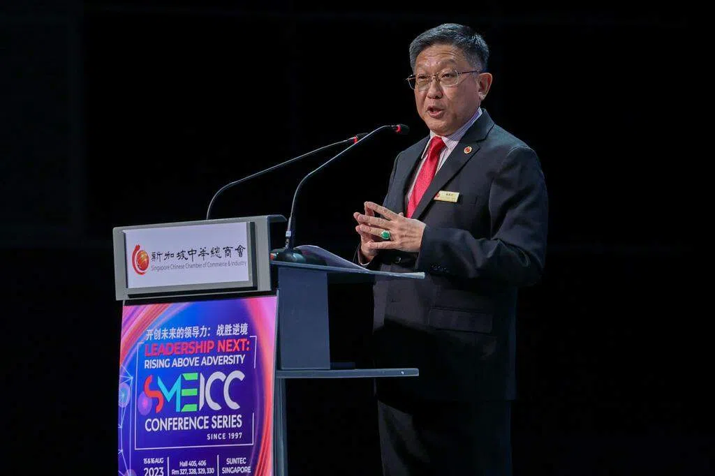 新加坡中华总商会会长高泉庆星期三(10月9日)在中小型企业大会暨资信商业大会上公布年度商业调查报告。