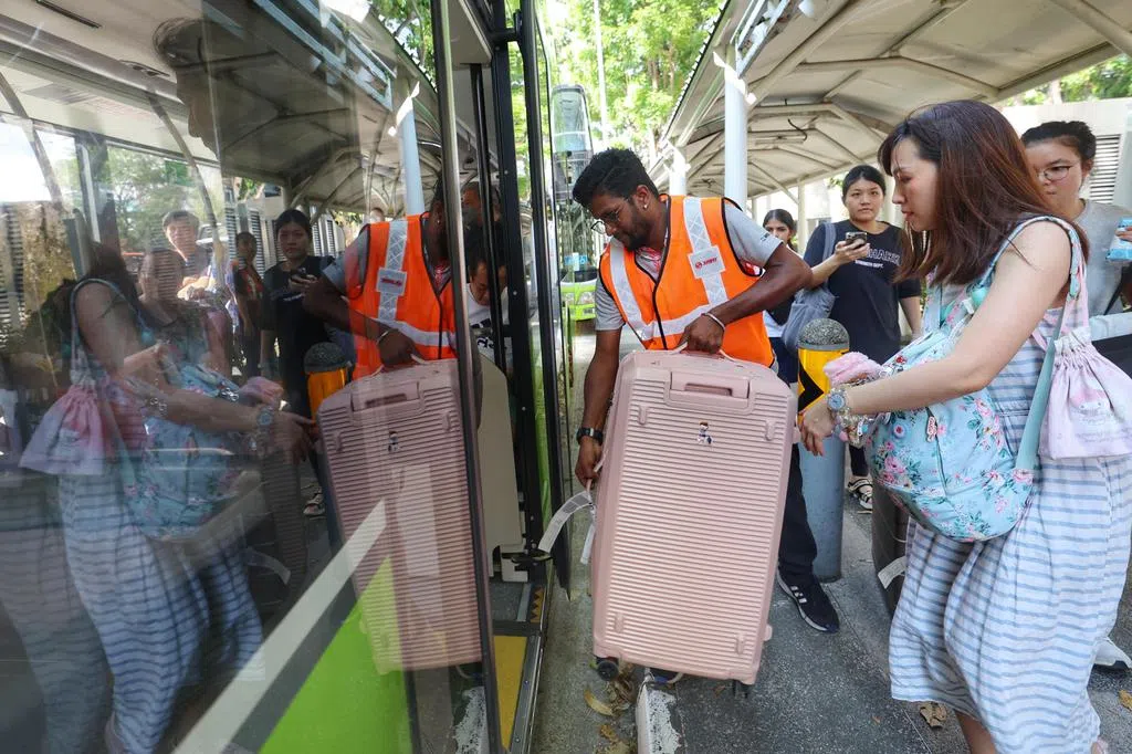 列车及地铁站都播放广播,告知乘车时间预计延长25分钟。SMRT在欧南园和女皇镇站之间,为受影响乘客提供免费巴士服务,工作人员也在场协助。