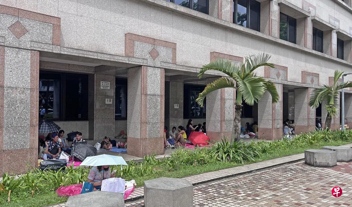 记者早前走访时,看见上百名女佣坐在大楼走道。她们在地上铺了塑料垫,坐在那里聊天、吃东西,有的还躺在地上睡觉。