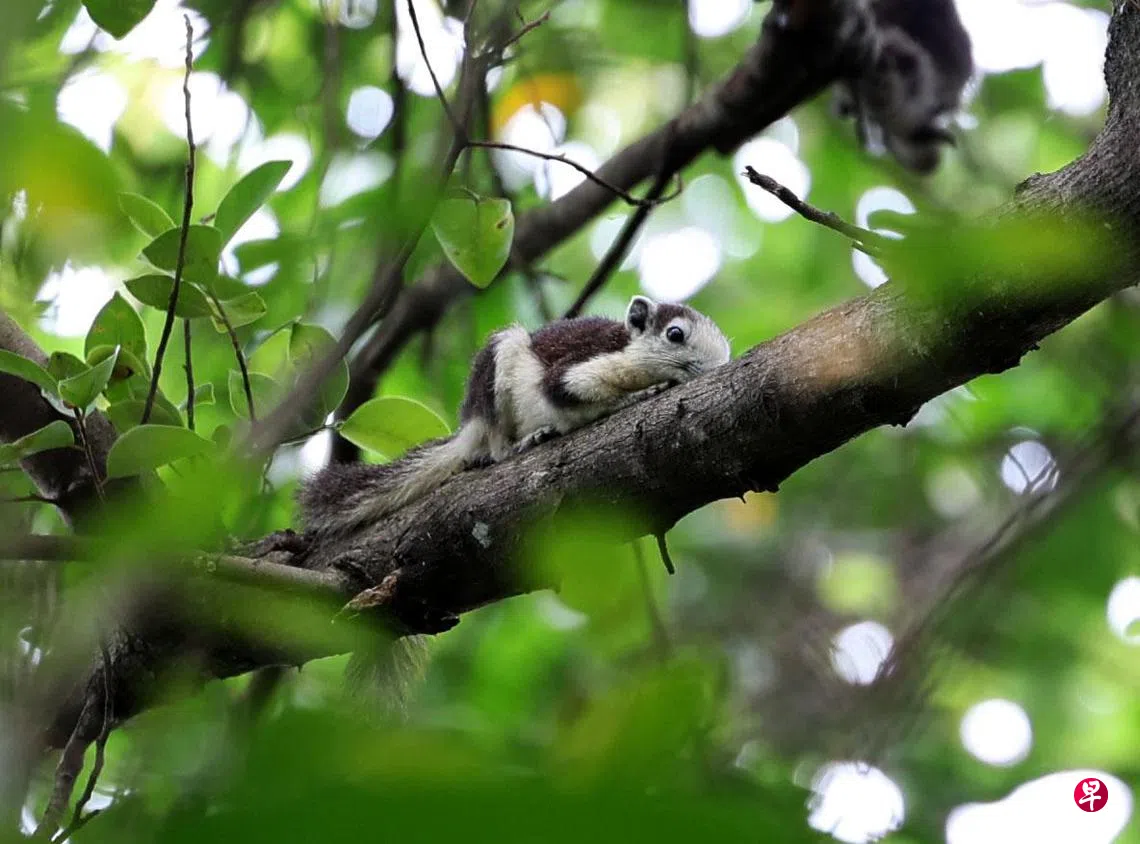 白背松鼠在开阔的林地和郊区公园活动,在我国主要活跃于阿裕尼上段、兀里和比达达利等地区,非常罕见。它们此前就在曾是坟场的比达达利一带出没,在公园关闭重新发展期间则一度神隐,直到重开后,才陆续有摄影爱好者在社媒平台分享,又捕捉到白背松鼠的身影。